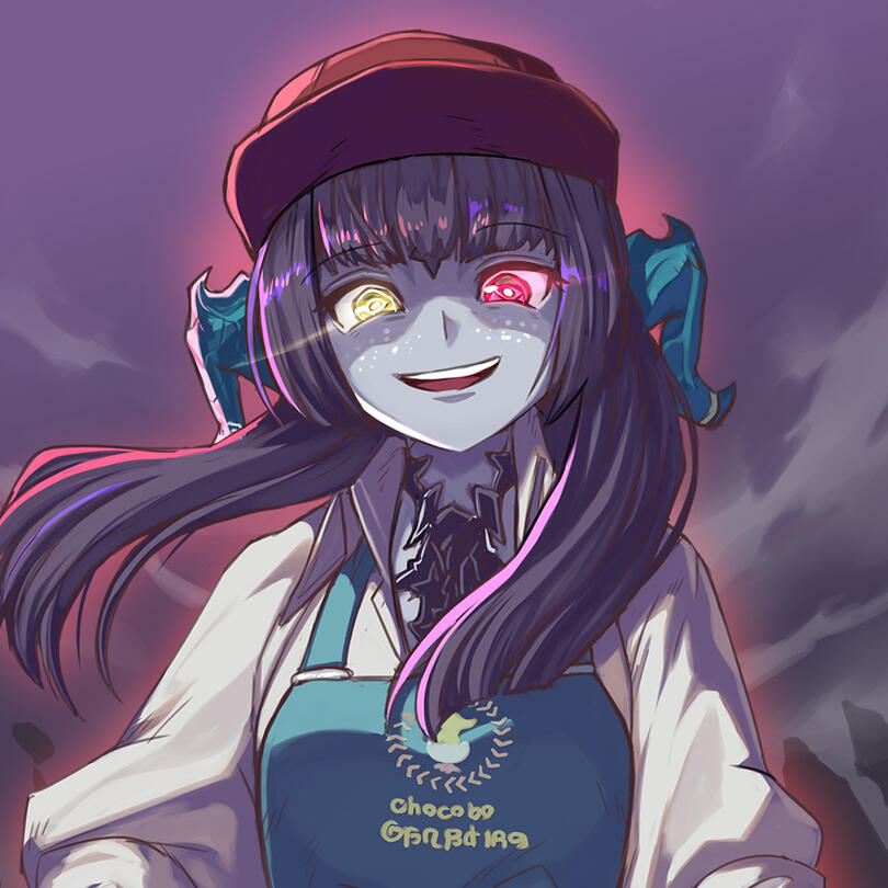 Onmyoujin, Jin for short, a demon "goat boy" (actually just a demon) that coalesced from lost souls at the edge of Purgatory. With Lust, Gluttony, and Sloth as his primary aspects, he mostly just wants to play sussy video games and eat cookies all day. Can be summoned with offerings of baked goods and hentai.